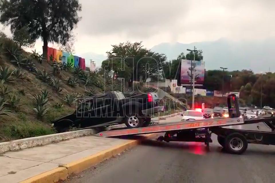 Dos lesionados al chocar contra talud en carretera vieja a Tula, Tamaulipas