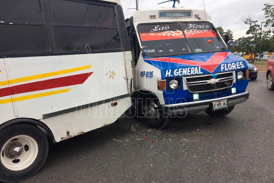 Choque entre microbuses deja daños materiales en Ciudad Victoria