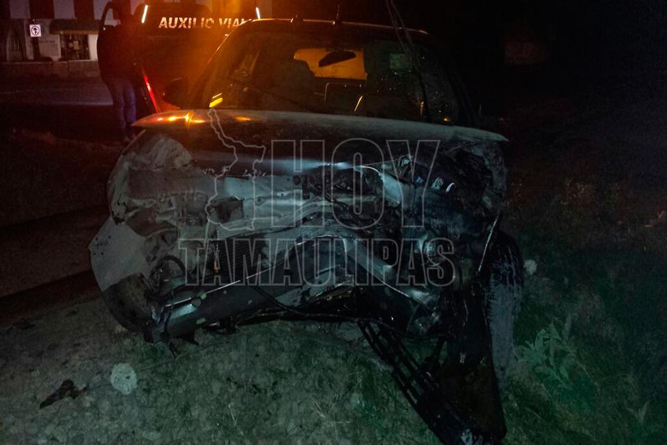 Ebrio conductor impacta su coche contra poste en Ciudad Victoria