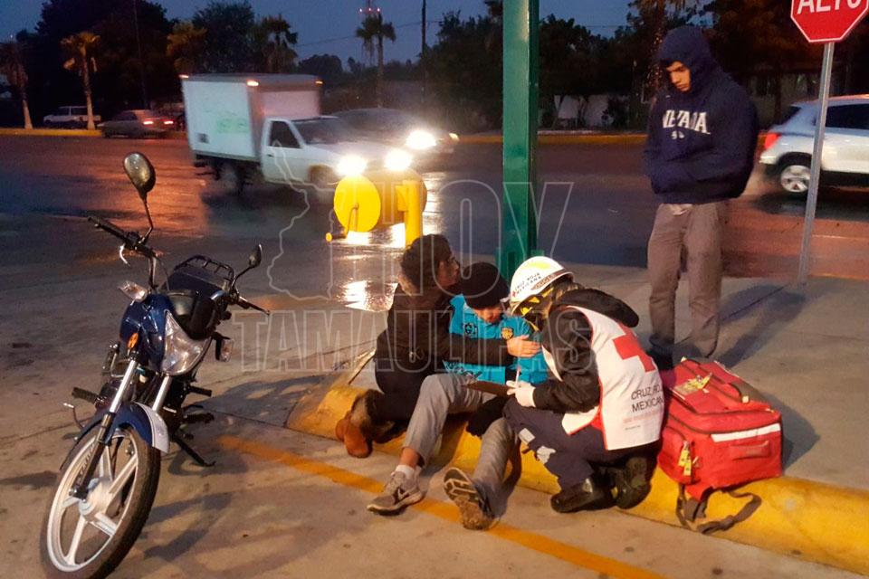 Lesionado joven estudiante al derrapar motocicleta en Ciudad Victoria