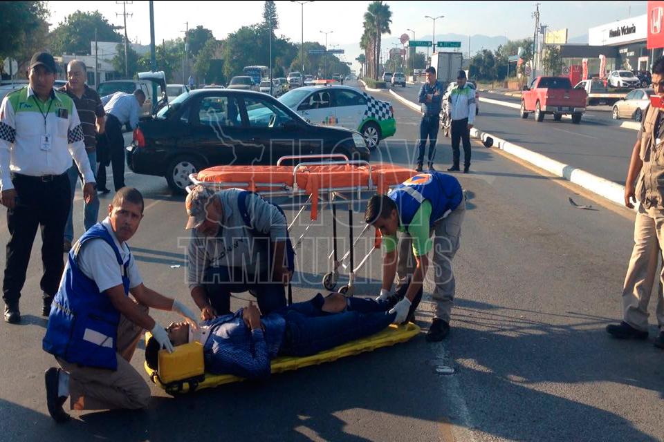 Motociclista lesionado al impactarse contra microbús en Ciudad Victoria