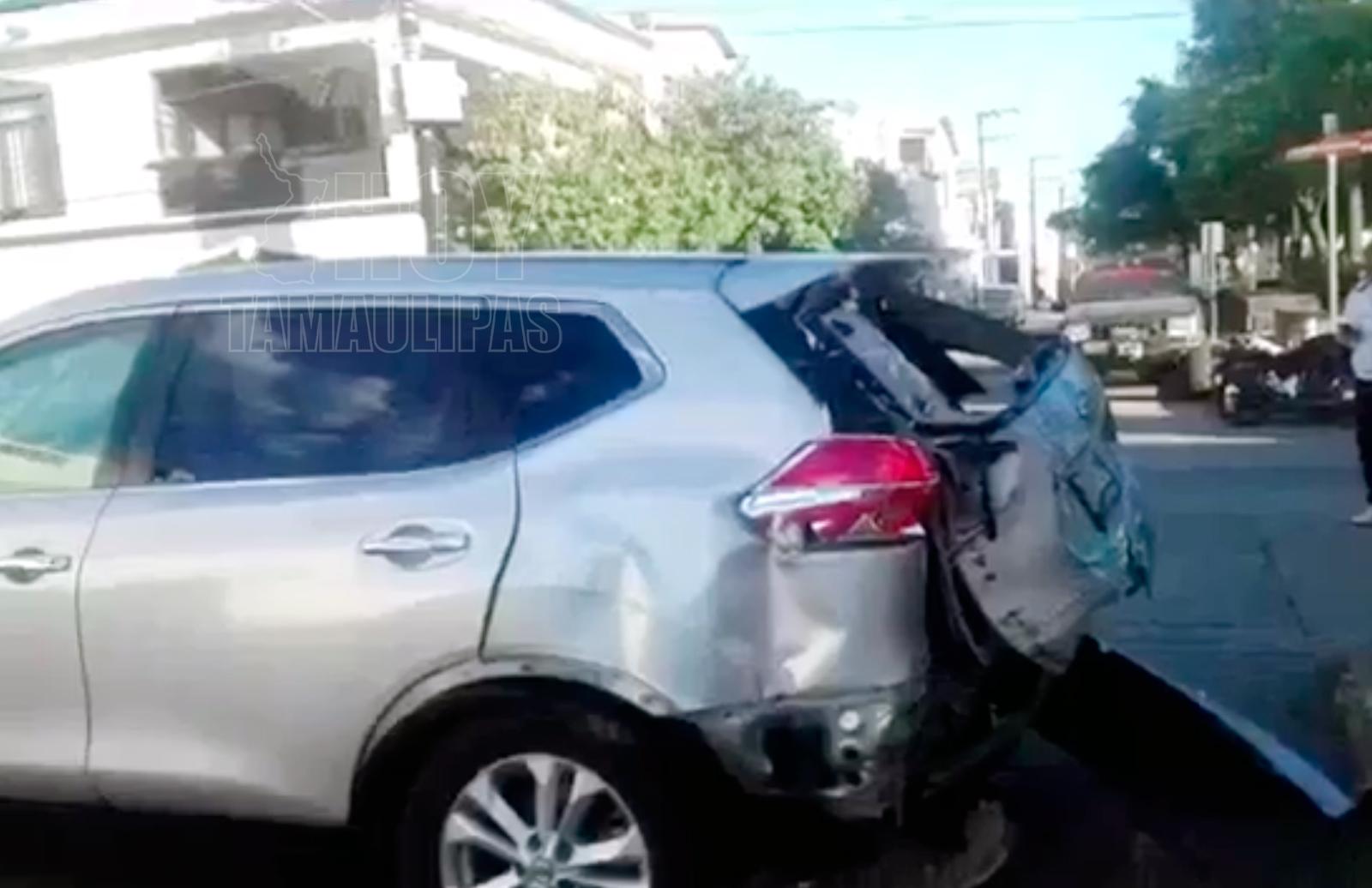 Omite alto y se impacta contra camioneta en Ciudad Victoria