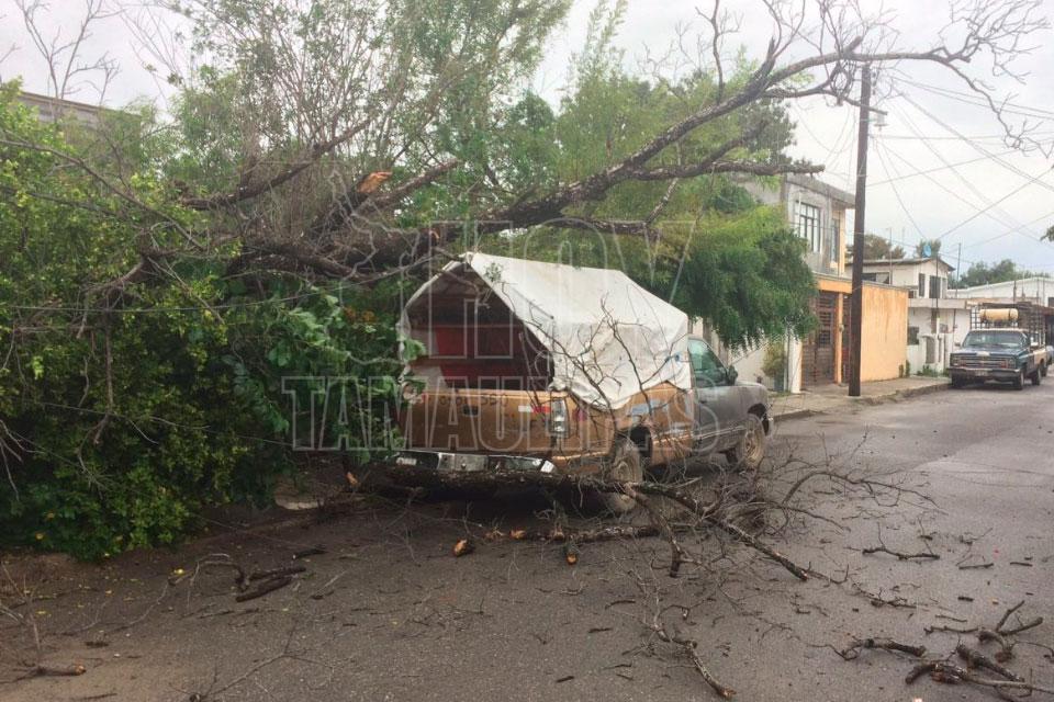 Cae árbol sobre camioneta en colonia de Ciudad Victoria