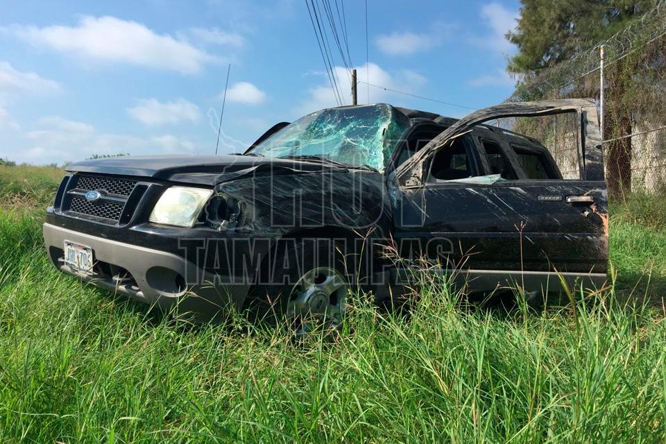 Pareja resulta lesionada al volcar en la Ciudad Victoria-Matamoros