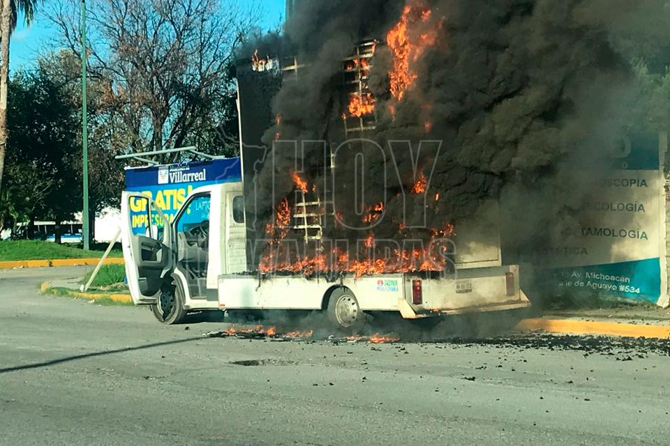 Se incendia camioneta de publicidad en Ciudad Victoria