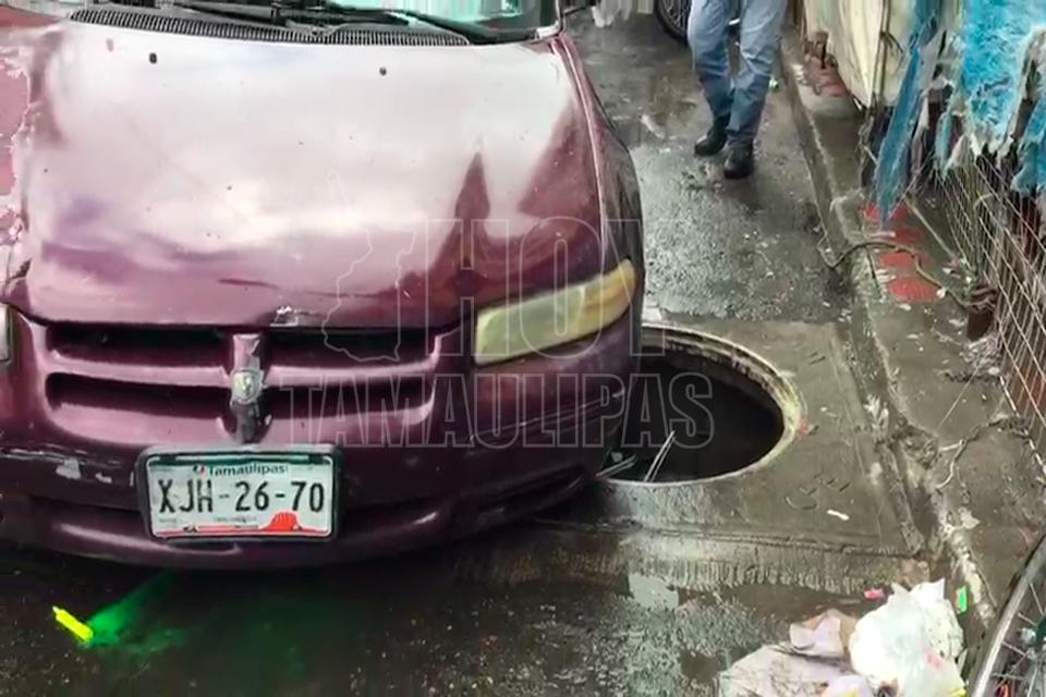 Cae automóvil en una alcantarilla en Ciudad Victoria