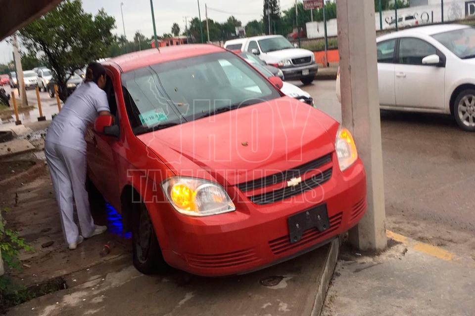 Mujer impacta su coche contra jardinera en Ciudad Victoria