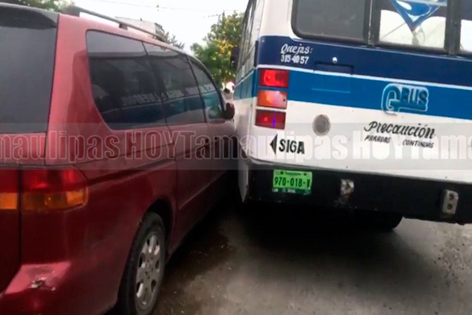 Microbusero provoca que lo choquen en Ciudad Victoria
