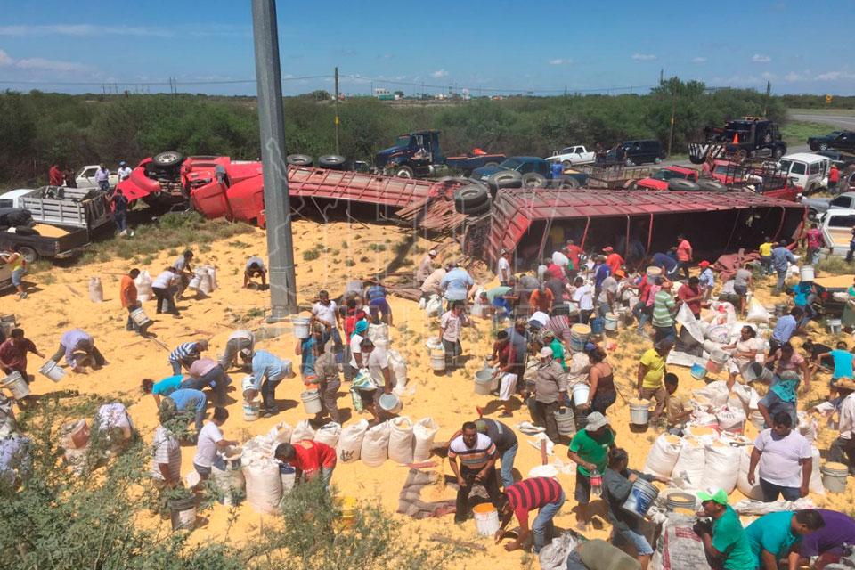 Vuelca tráiler cargado con 80 toneladas de maíz en la Victoria-Soto la Marina