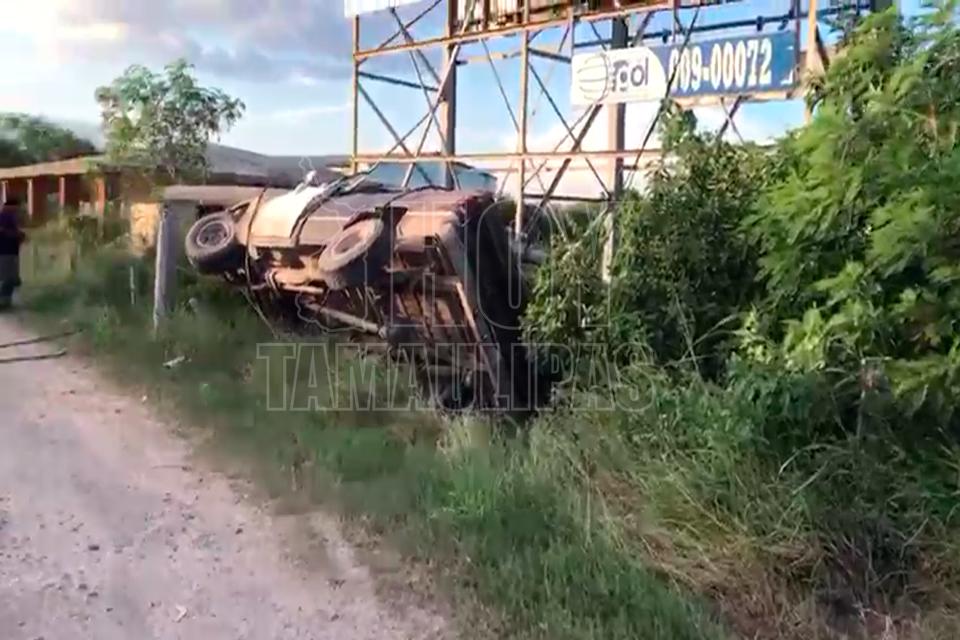 Se estrella contra poste y termina volcado en la Victoria-Matamoros