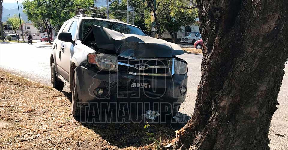 Estudiante de la UAT se queda sin frenos y se detiene en un árbol en Ciudad Victoria