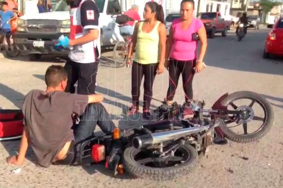 Motociclista lesionado al impactarse contra microbús en Ciudad Victoria