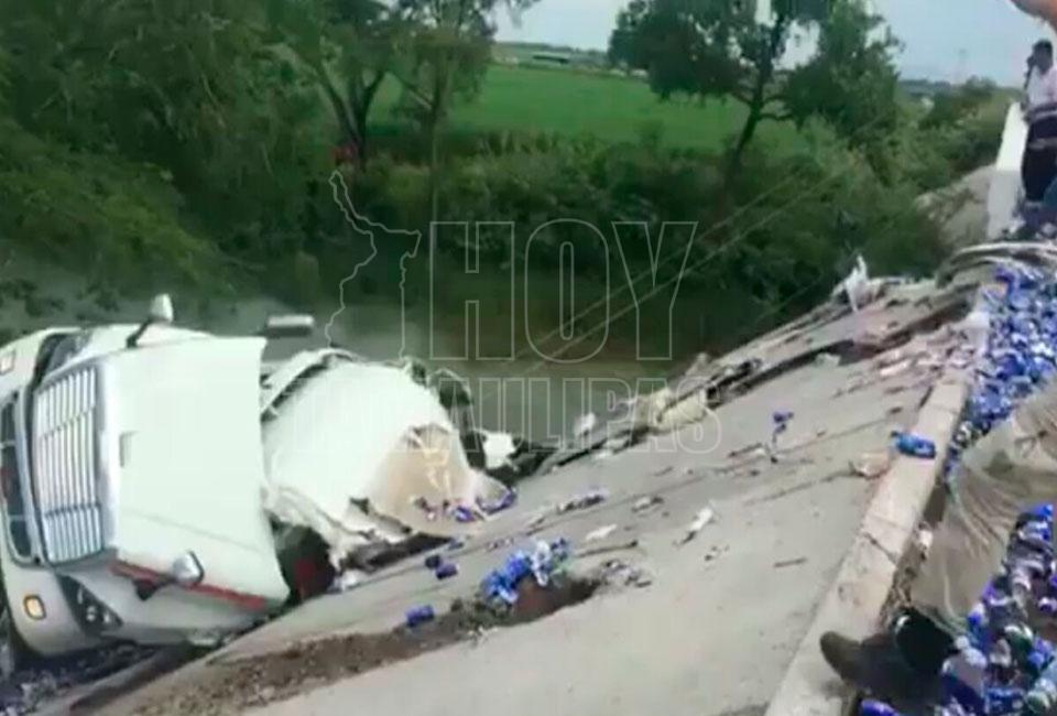 Vuelca tráiler de cerveza en la Mante-Ocampo