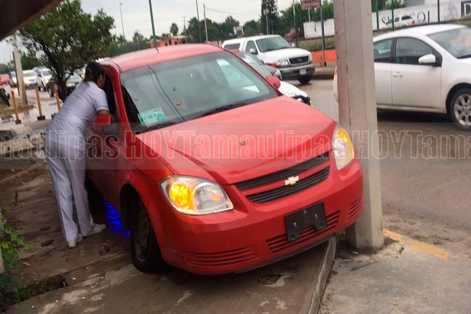 Mujer impacta su coche contra jardinera en Ciudad Victoria