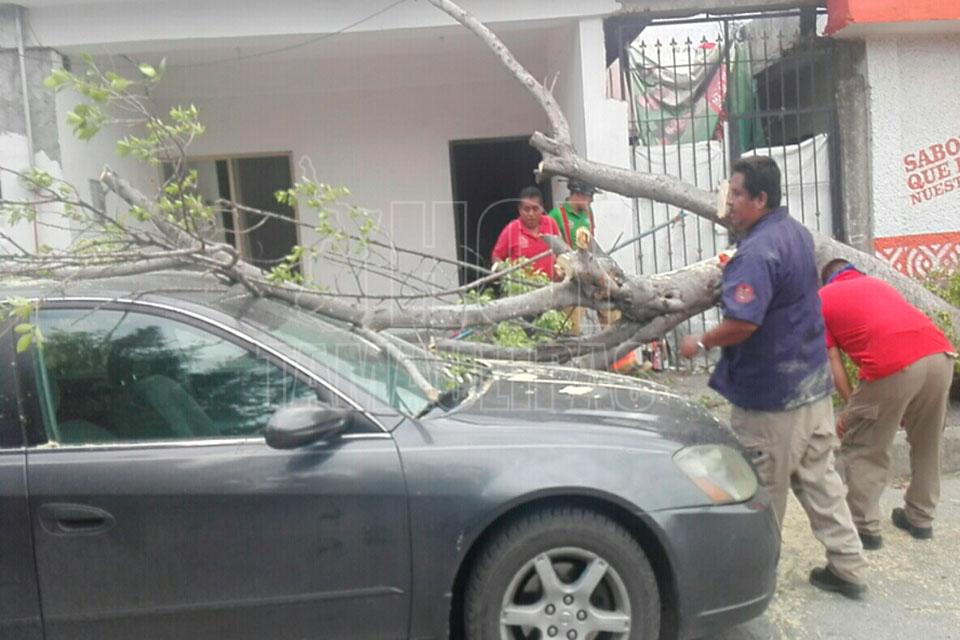 Cae árbol sobre vehículo en Ciudad Victoria