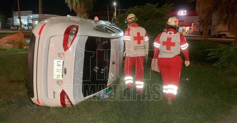 Dos lesionados deja choque y volcadura en Ciudad Victoria