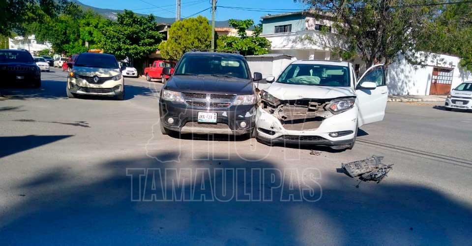 Maniobra imprudente provoca fuerte choque en avenida de Ciudad Victoria