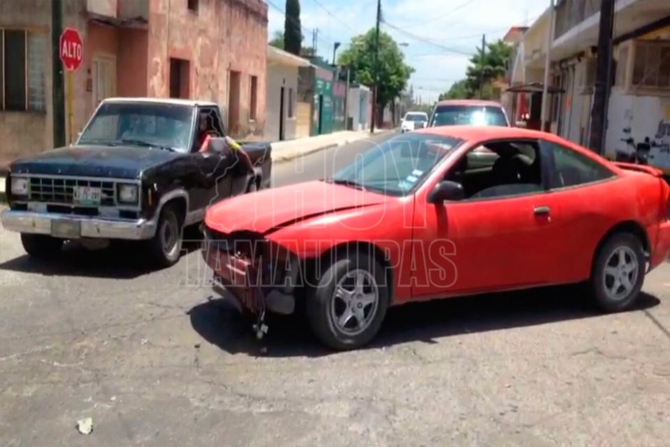 Omite alto e impacta a camioneta en Ciudad Victoria