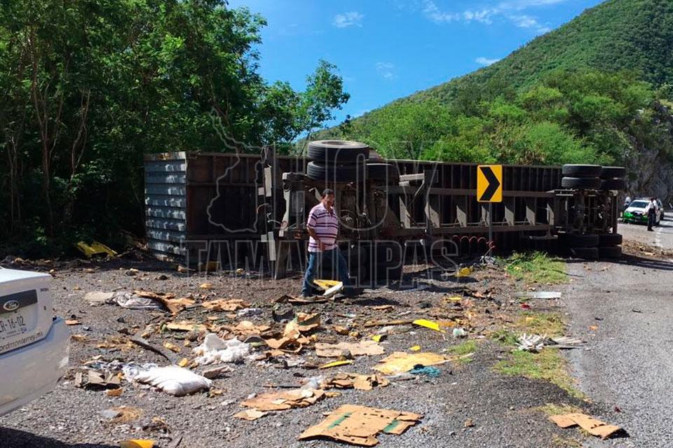 Se le desprende contenedor a tracto camión en la Rumbo Nuevo