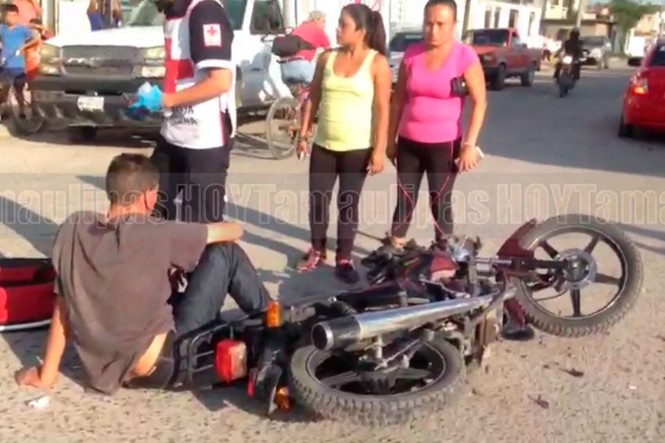 Motociclista lesionado al impactarse contra microbús en Ciudad Victoria