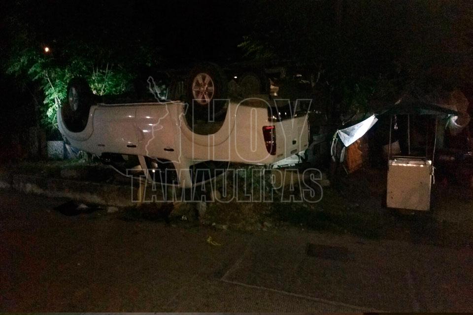 Abandonan camioneta tras volcar en colonia de Ciudad Victoria