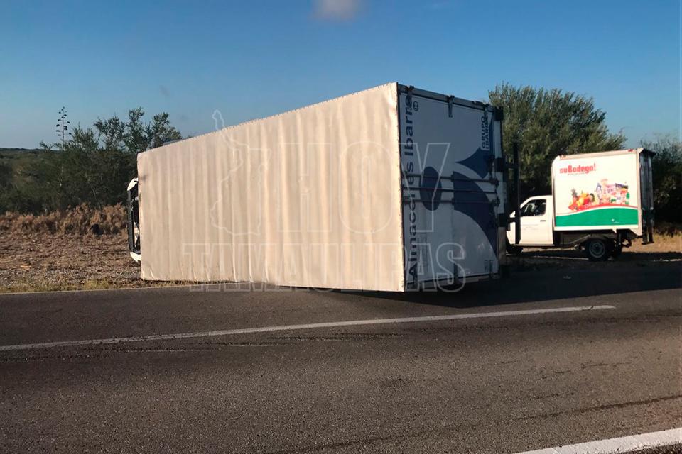 Vuelca camión cargado con frutas y verduras en la Ciudad Victoria-Matamoros