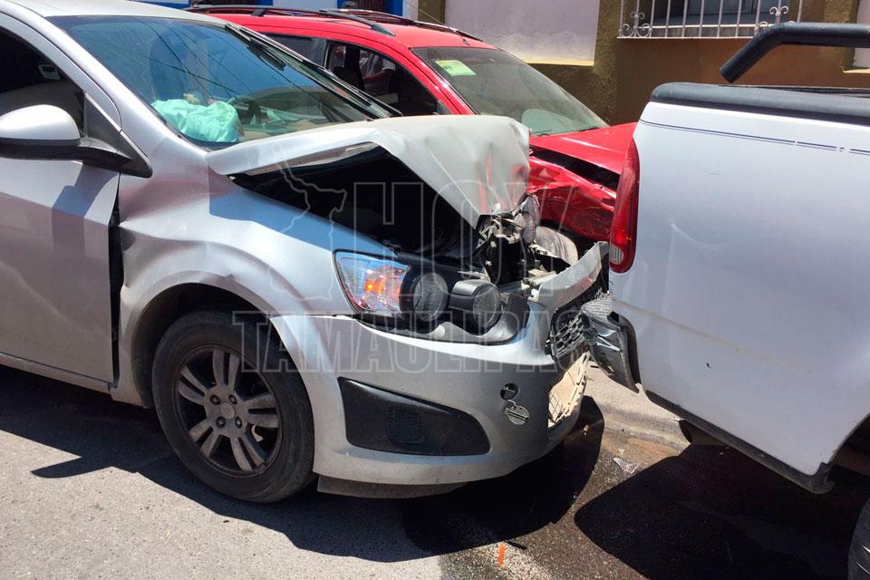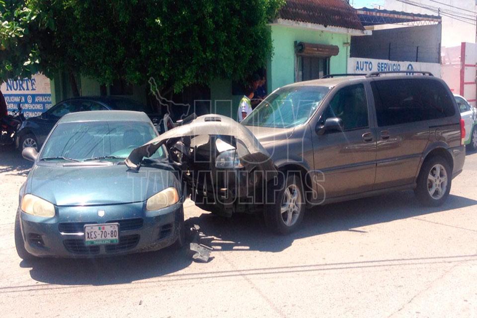 Omite alto y se estampa contra camioneta en Ciudad Victoria