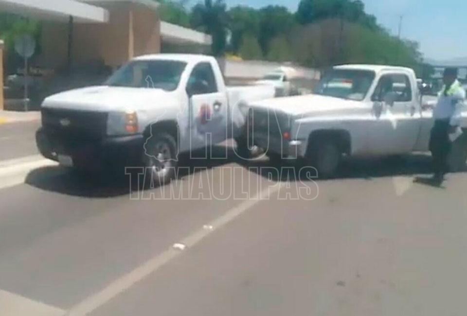 Chocan camionetas frente a Casa de Gobierno en Ciudad Victoria