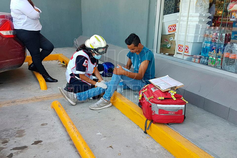 Motociclista choca en estacionamiento de Oxxo en Ciudad Victoria