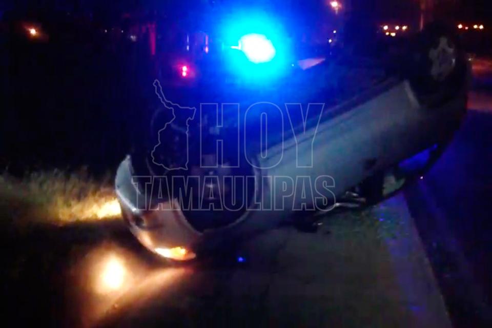 Abandonan Chevy tras volcarlo en Ciudad Victoria