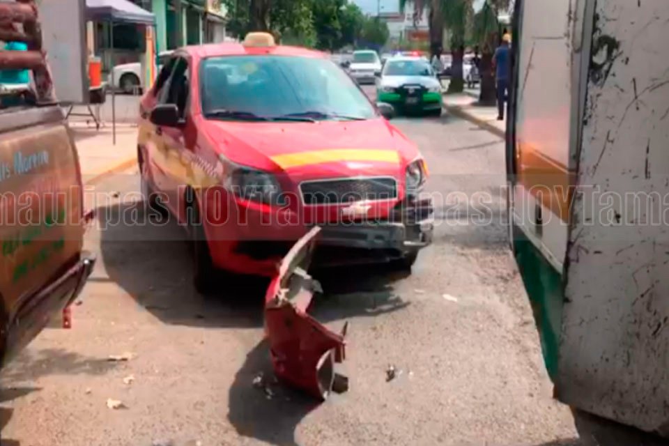 Choque entre microbús y taxi en Ciudad Victoria deja daños materiales