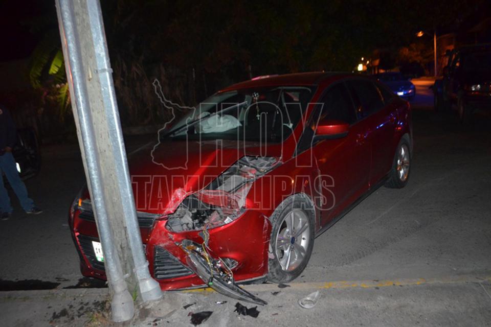 Automovilista omite alto y se estampa contra carro en Ciudad Victoria