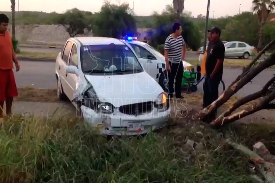 Mujer estampa su carro contra árbol en Ciudad Victoria