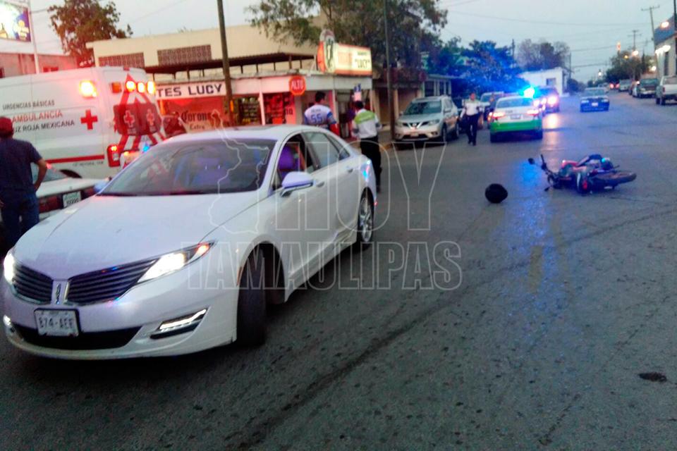 Motociclista se estampa contra vehículo en Ciudad Victoria
