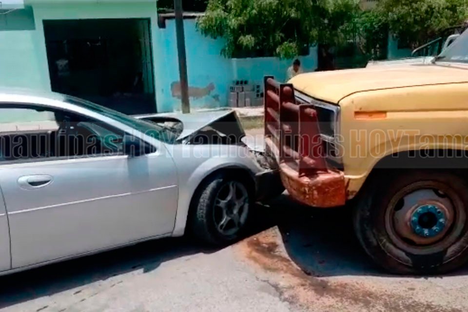 Camión se estampa contra coche en Ciudad Victoria