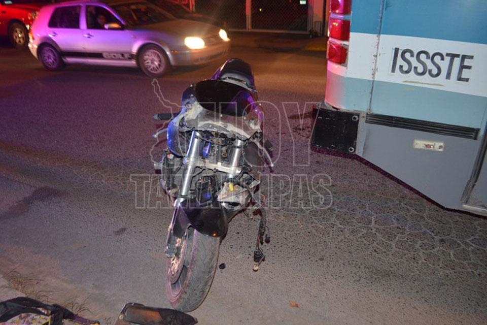 Motociclista se estampa contra microbús en Ciudad Victoria