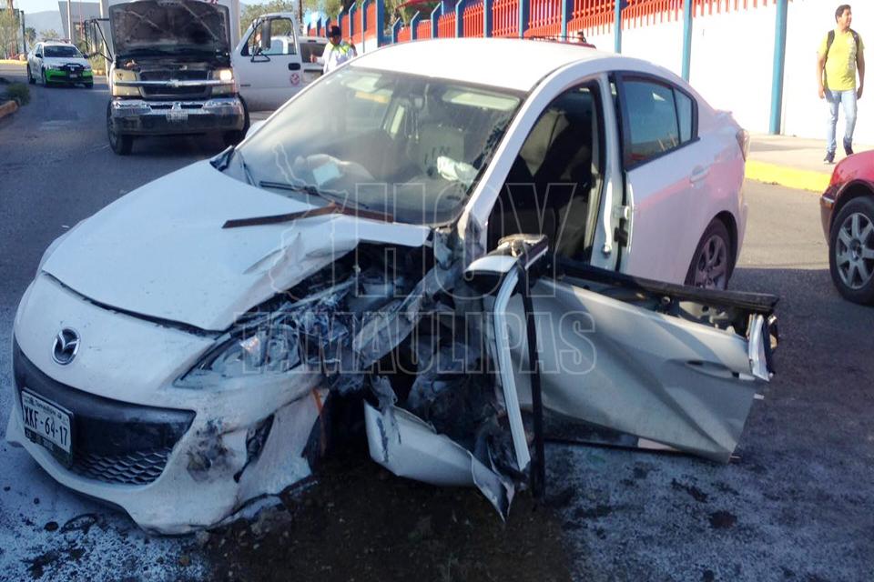 Se pasa alto y estrella su camioneta contra carro en Ciudad Victoria
