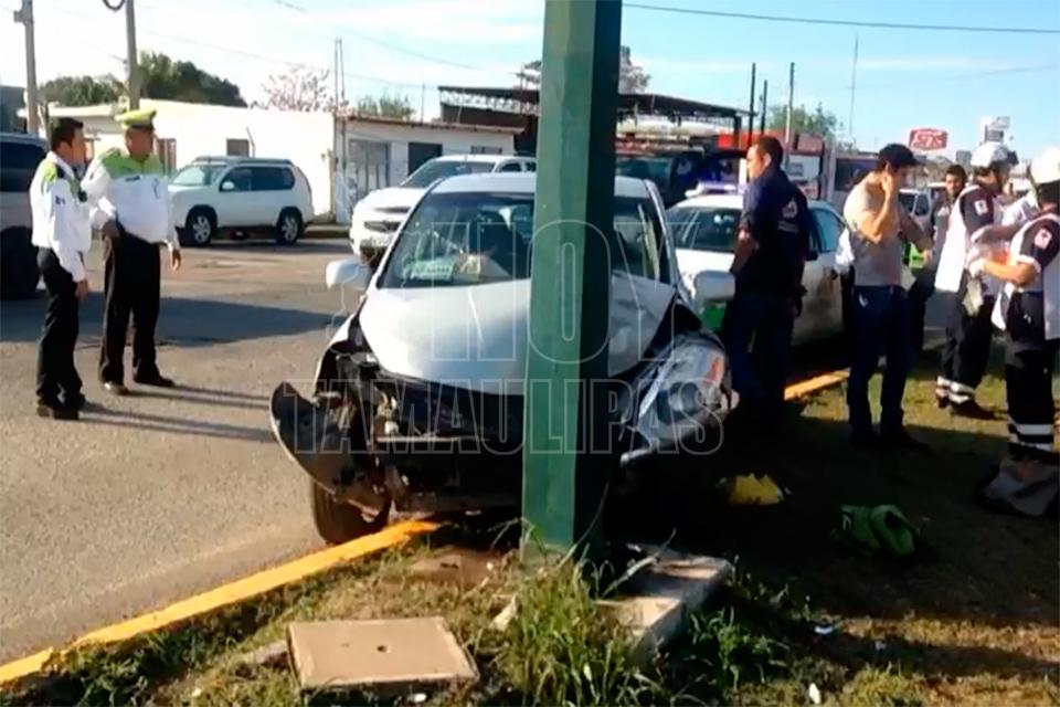 Conductor se impacta contra luminaria en Ciudad Victoria