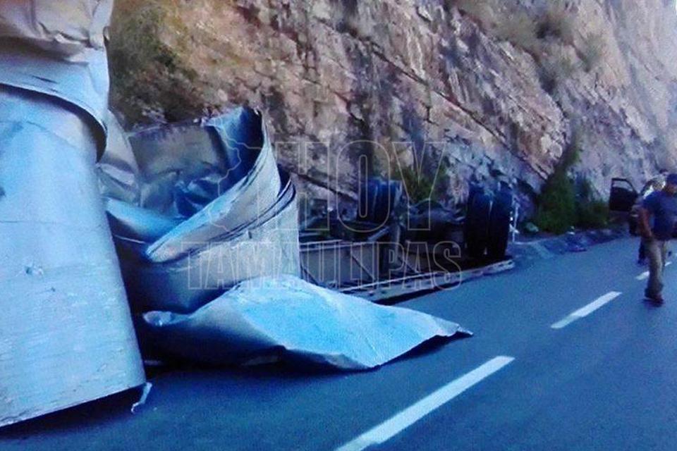 Choca tráiler contra el talud de la sierra en la Rumbo Nuevo