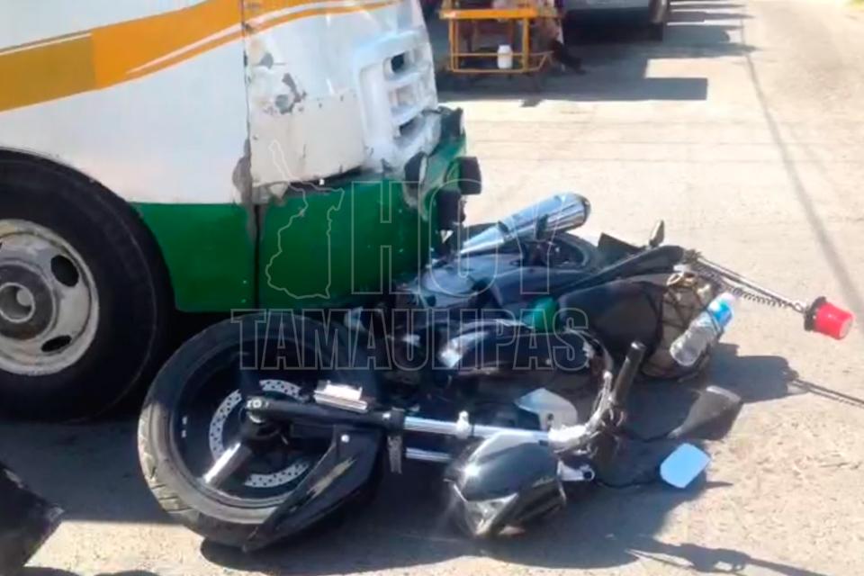 Microbús arrastra moto de la Policía en Ciudad Victoria