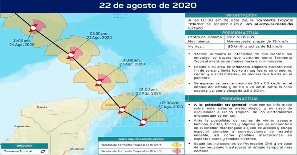 Declaran Alerta Amarilla en Yucatán por tormenta “Marco”