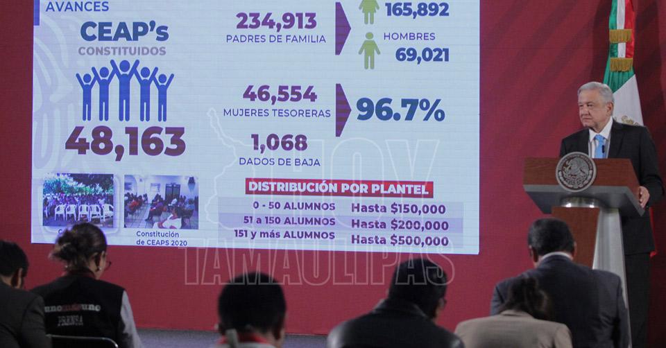 Pide AMLO a comités de padres de familia destinar recursos a obras