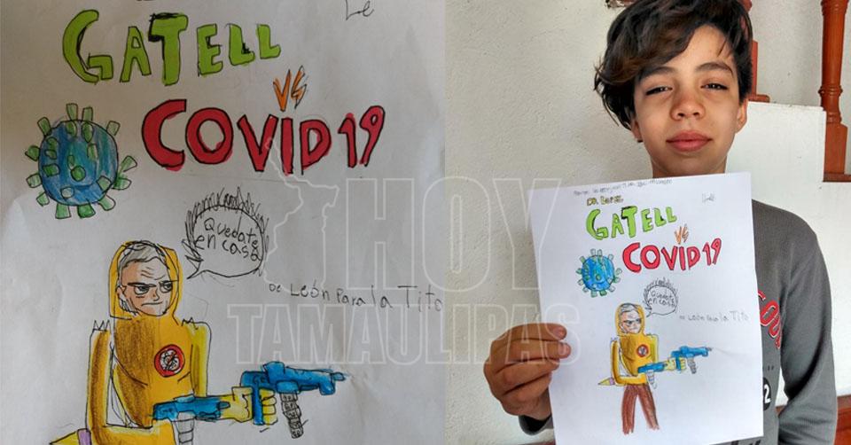 En Malinalco: Niño dibuja como superhéroe a López-Gatell