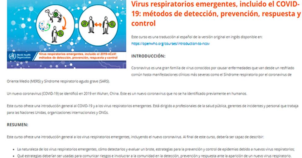 Abre OMS curso gratuito para médicos sobre coronavirus