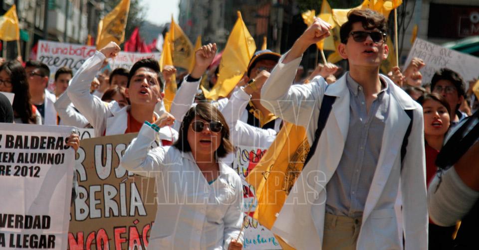 Estudiantes de medicina esperan en Palacio Nacional