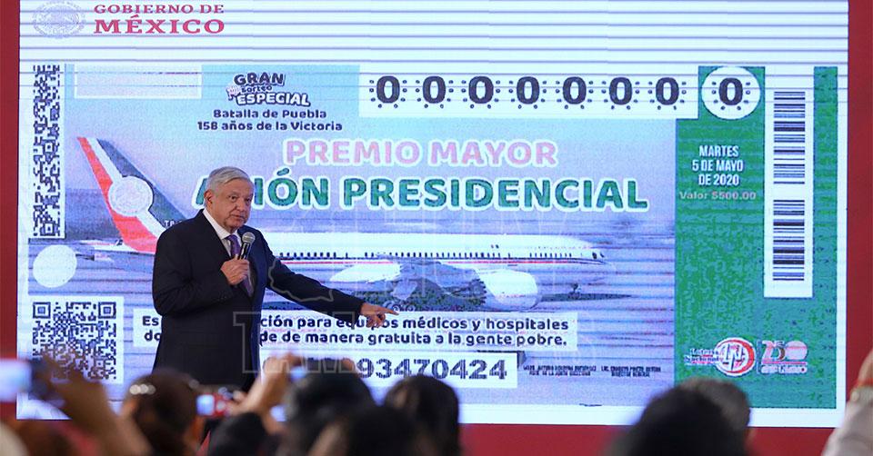 Presenta AMLO diseño del boleto para rifa de avión presidencial