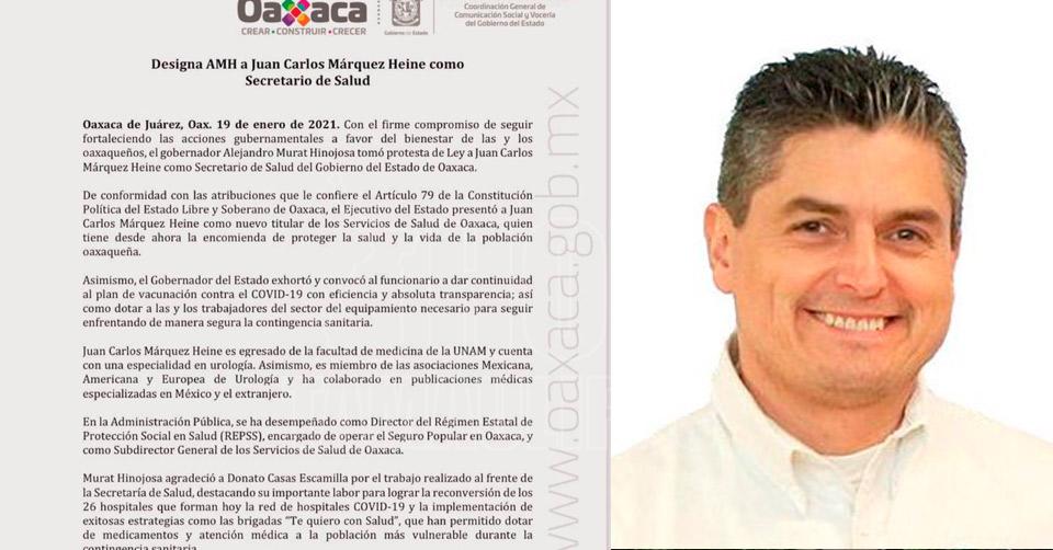 Alejandro Murat designa a nuevo titular de Salud en Oaxaca