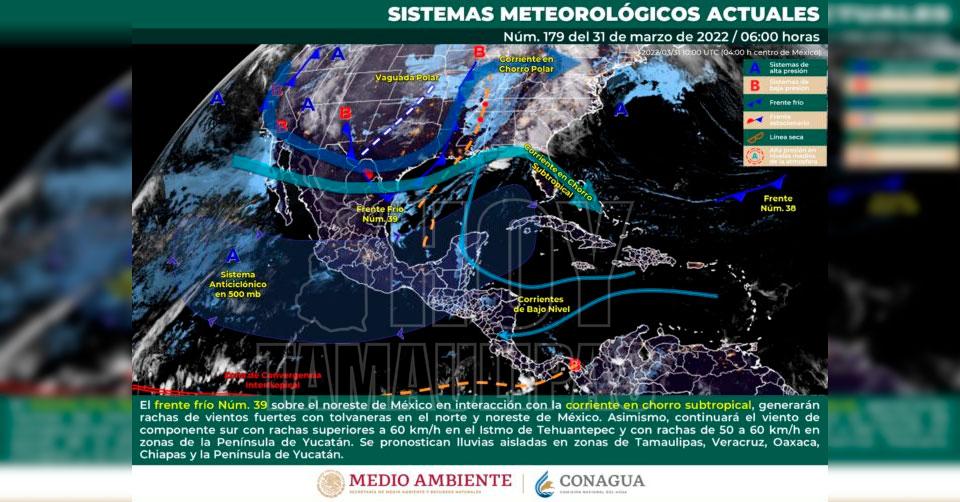 Se pronostican vientos fuertes en el noroeste, norte y oriente de México