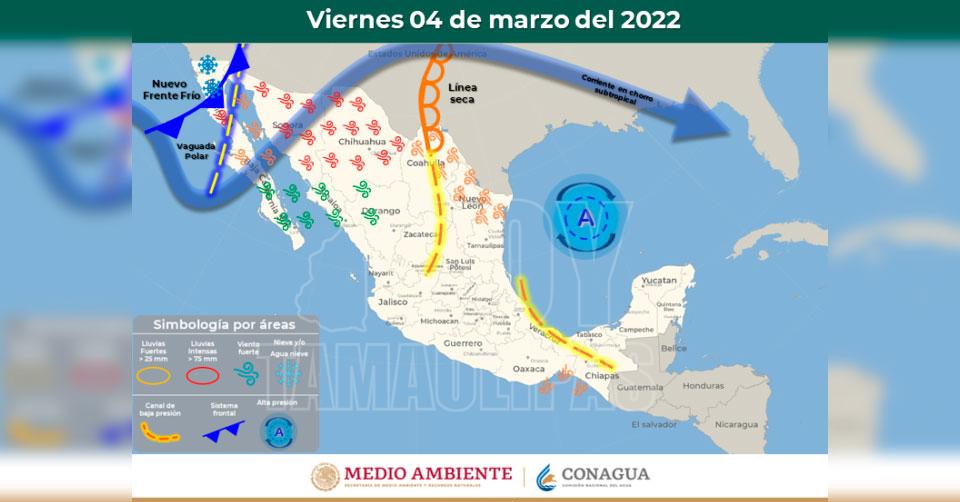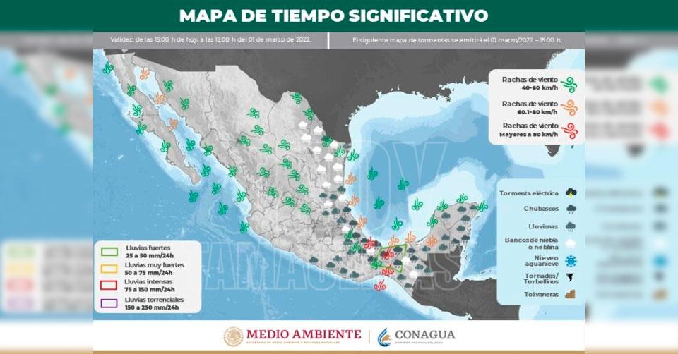 Se esperan vientos de más de 90 km, tolvaneras, chubascos y ambiente cálido en el país