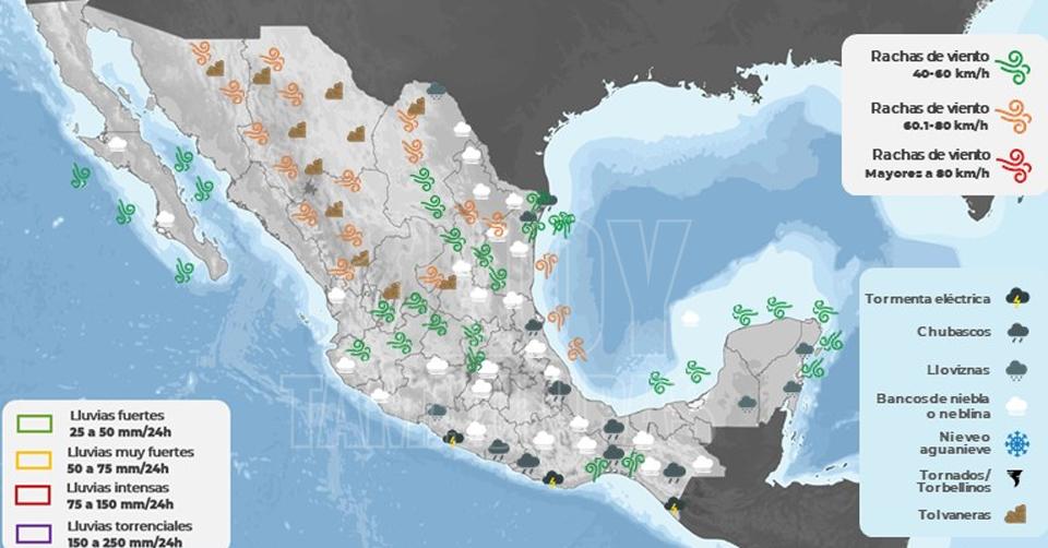 Chubascos, fuertes vientos y heladas en varios estados del país